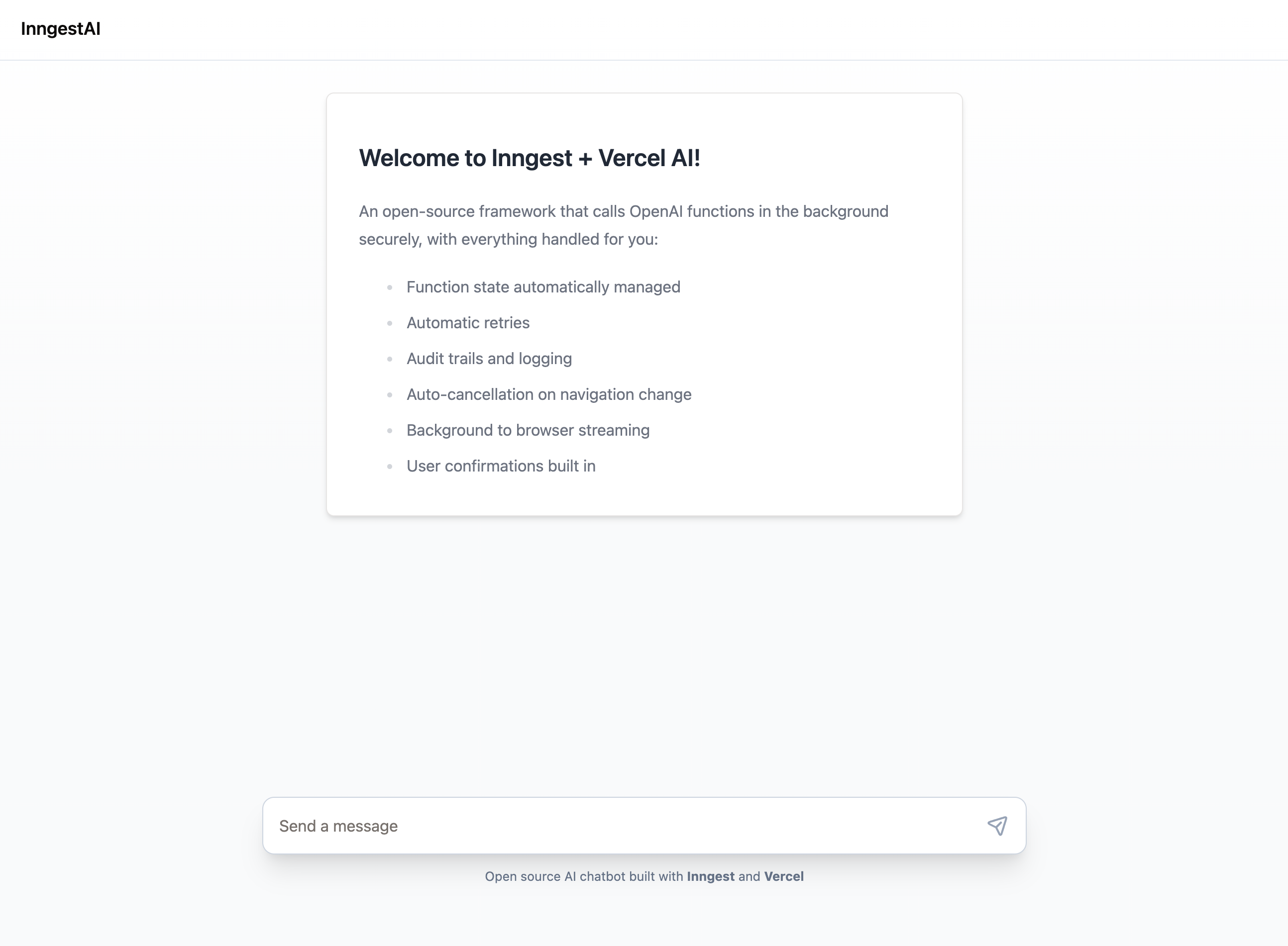 This POSTs a request to the /api/chat endpoint, dispatching an Inngest event that triggers the primary workflow.